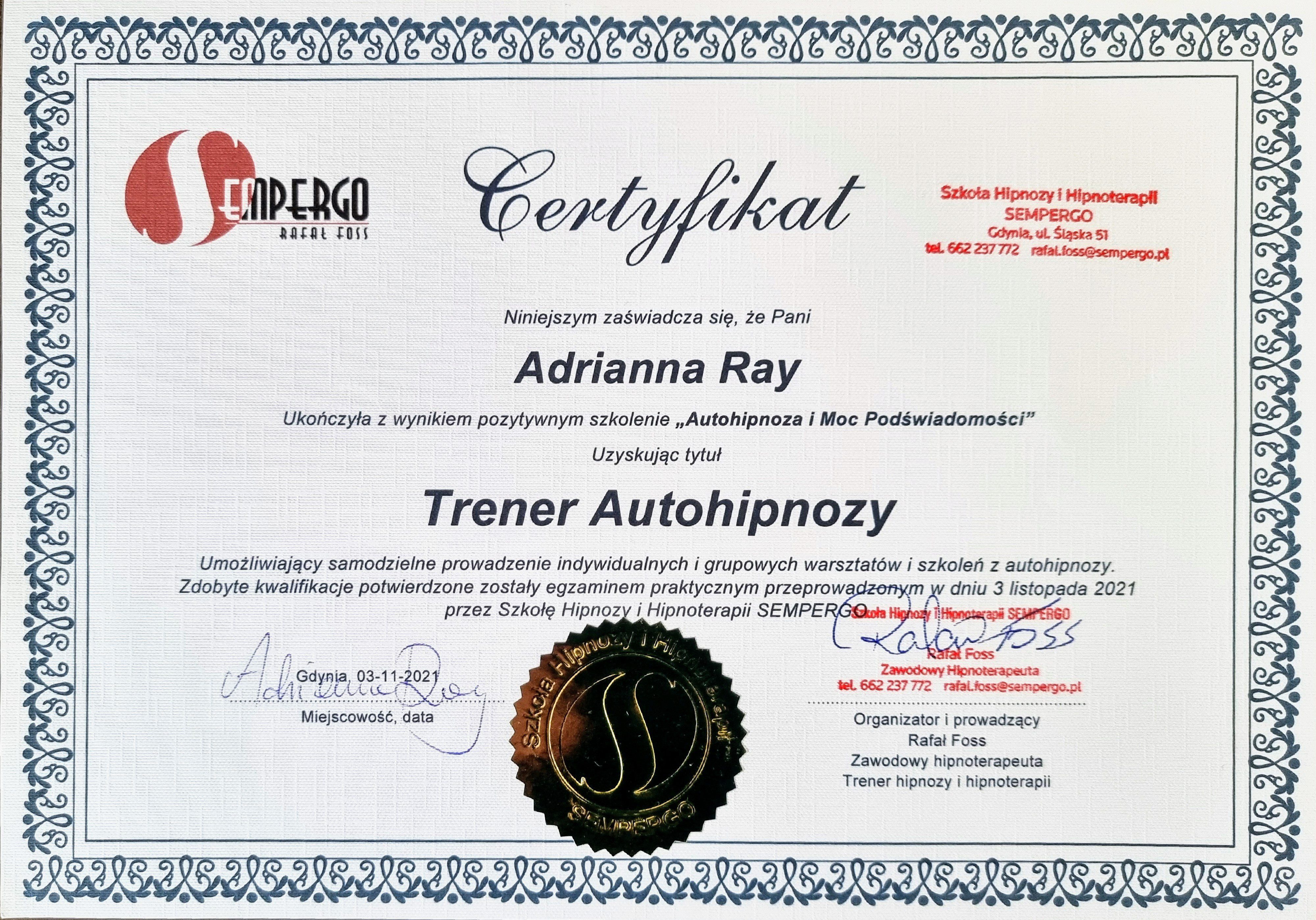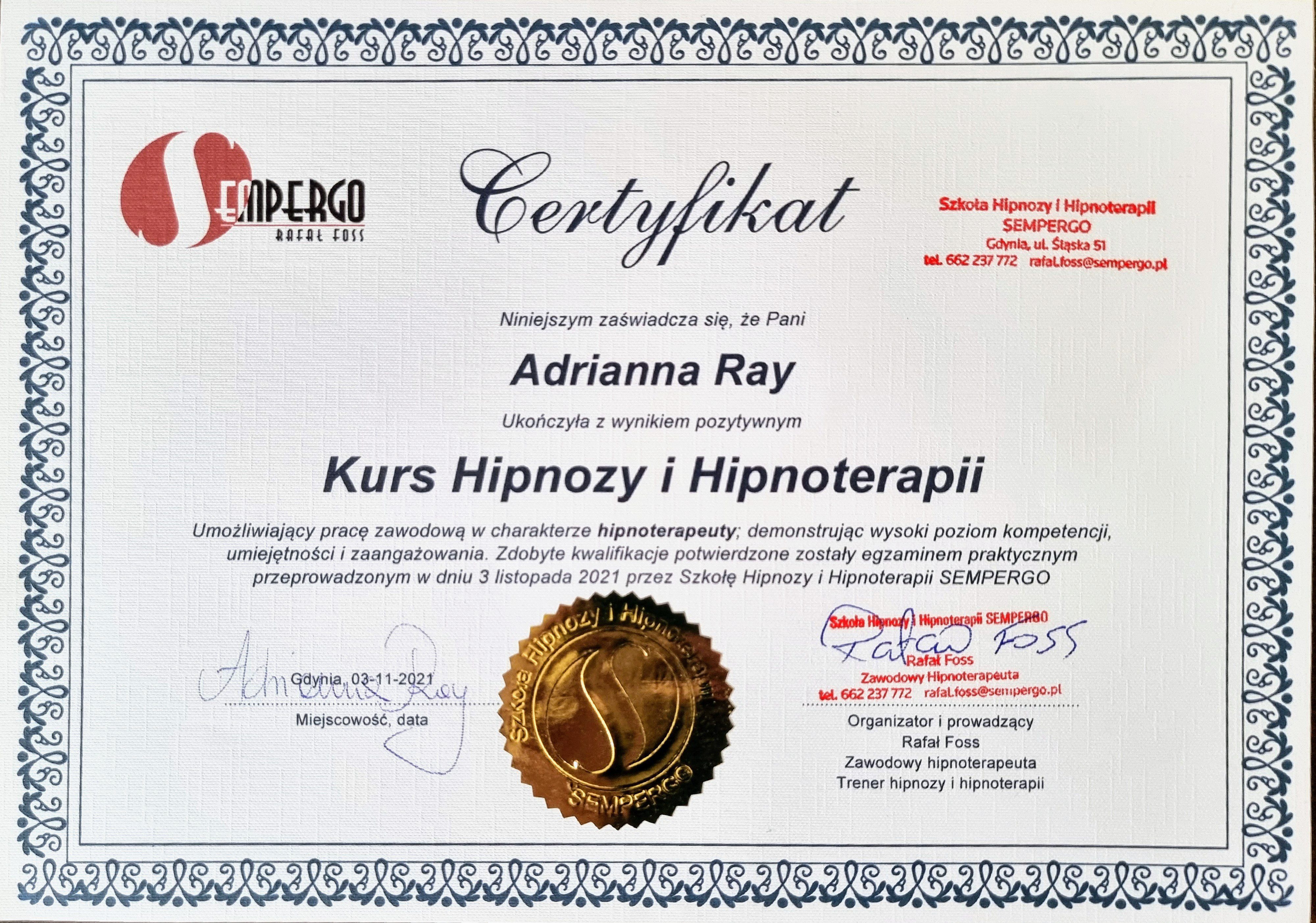 certyfikowany hipnoterapeuta