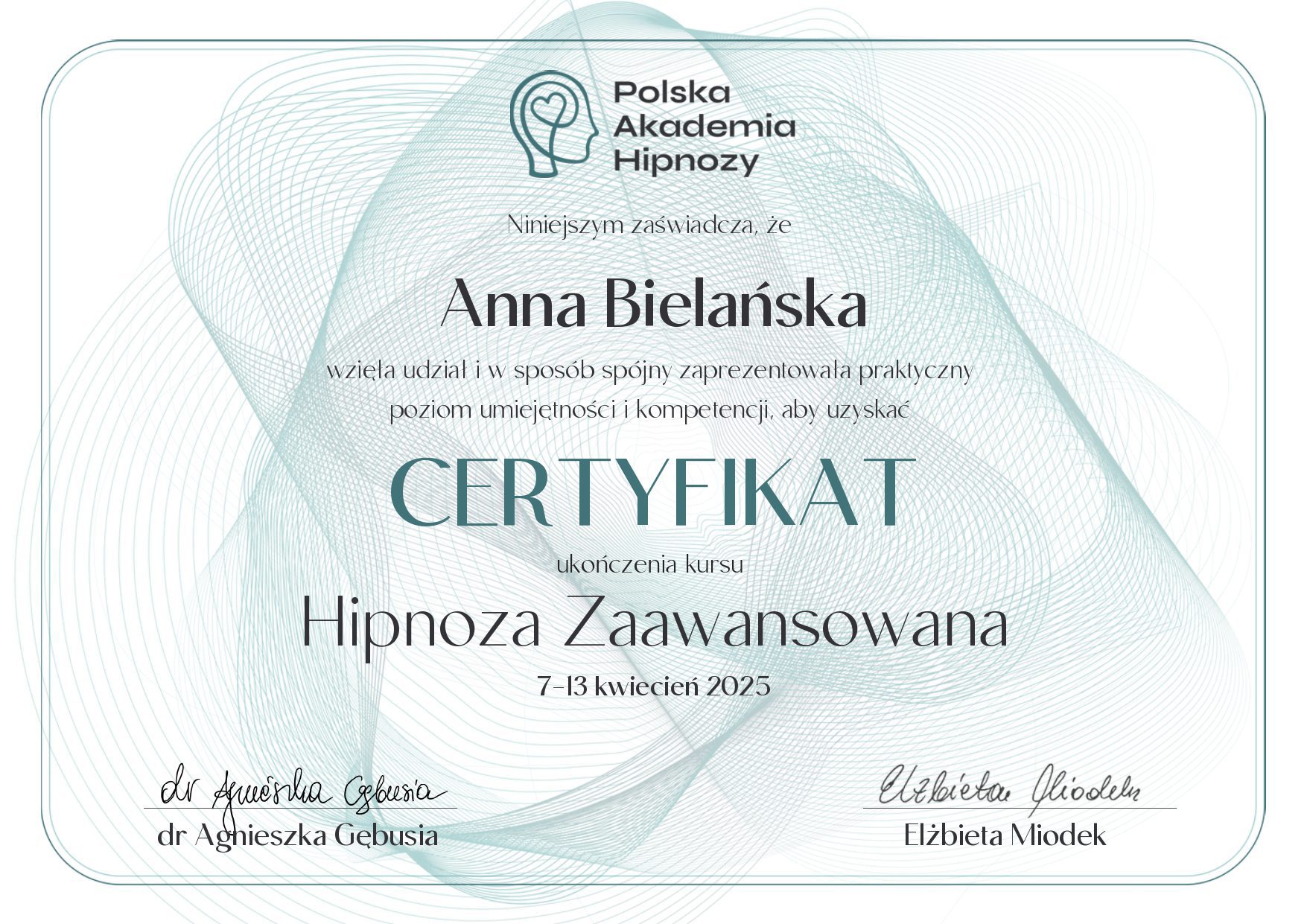 Nazywam się Anna Bielańska i jestem certyfikowaną hipnoterapeutką. Od lat fascynuje mnie ludzki umysł – jego moc, możliwości oraz to, jak głęboko wpływa na nasze życie.