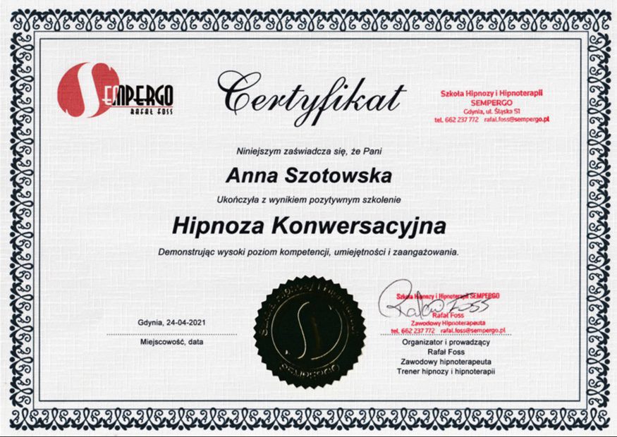 • Szkoła Hipnozy i Hipnoterapii Sempergo – od 2021