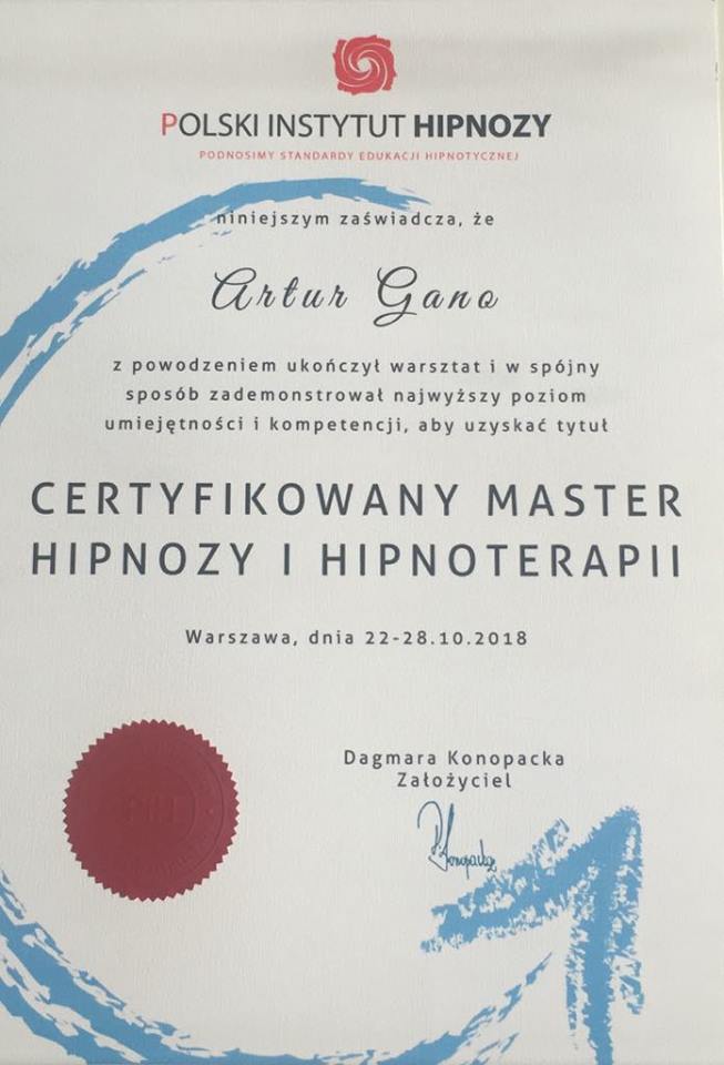 Pasjonuję się hipnozą i nieograniczonymi możliwościami jakie ze sobą niesie praca z podświadomością od 2012 roku. Jestem certyfikowanym hipnoterapeutą, członkiem Polskiego Instytutu Hipnozy oraz National Guild of Hypnosis. Uwielbiam pracować z ludźmi pomagając im pozbyć się problemów oraz osiągać pełnię ich potencjału. Wierzę, że w każdym z nas jest wewnętrzna mądrość i moc uzdrawiania, która pomaga odnaleźć najlepszy sposób, aby stworzyć osobiste szczęście i wspaniałe relacje.
