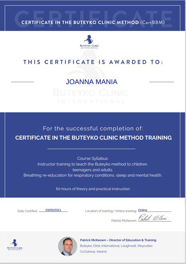 Jestem certyfikowanym hipnoterapeutą zrzeszonym w The National Federation of Neurolinguistic Programming w USA. Ukończyłam liczne szkolenia w zakresie hipnozy klinicznej, regresyjnej, NLP, terapii schematów, a także studia psychologii klinicznej i psychoterapii. Uzyskane kwalifikacje Międzynarodowego Instruktora Buteyko Clinic i 17 lat doświadczenia w pracy z oddechem sprawiają, że ogromną uwagę przykładam do technik oddechowych. Odpowiednie nawyki oddechowe są niezwykle ważne w walce z dolegliwościami, takimi jak lęk, depresja, bezsenność czy ataki paniki.