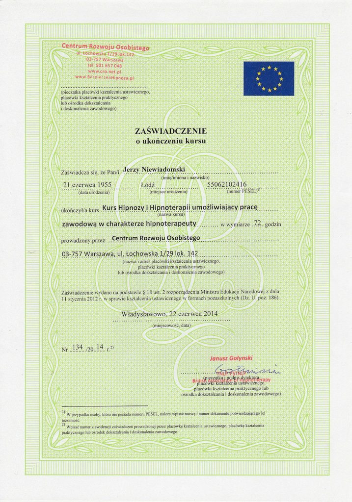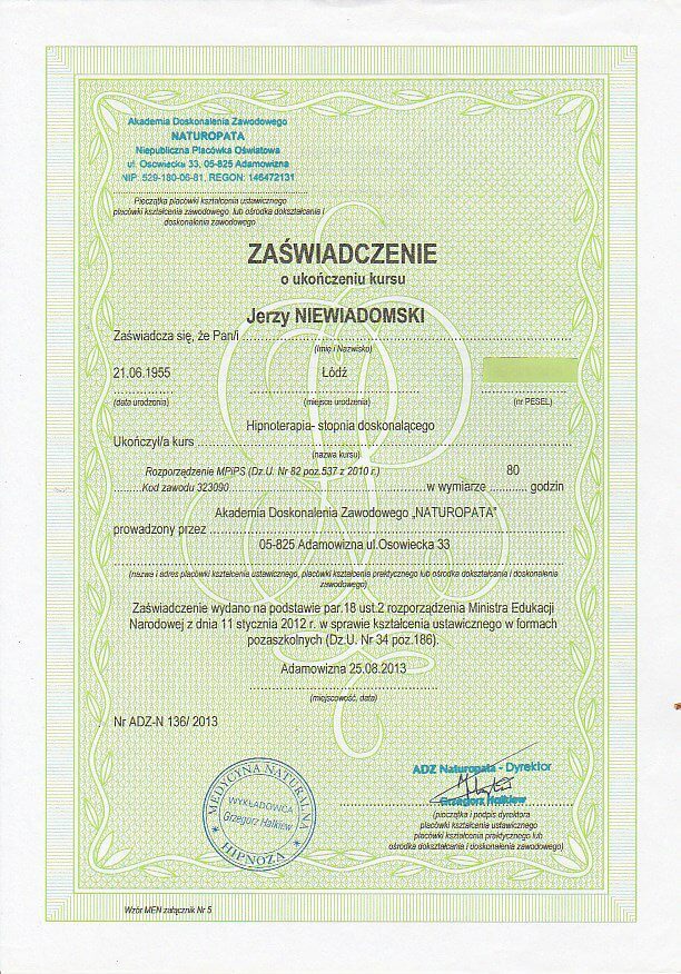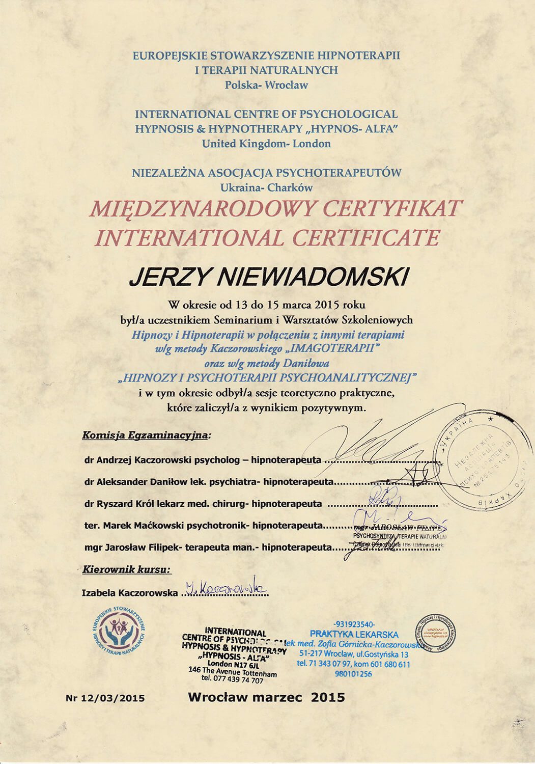 Jestem Dyplomowanym Mistrzem BIOENERGOTERAPII, PSYCHOTERAPIA, HIPNOTERAPIA, UZDRAWIANIE DUCHOWE