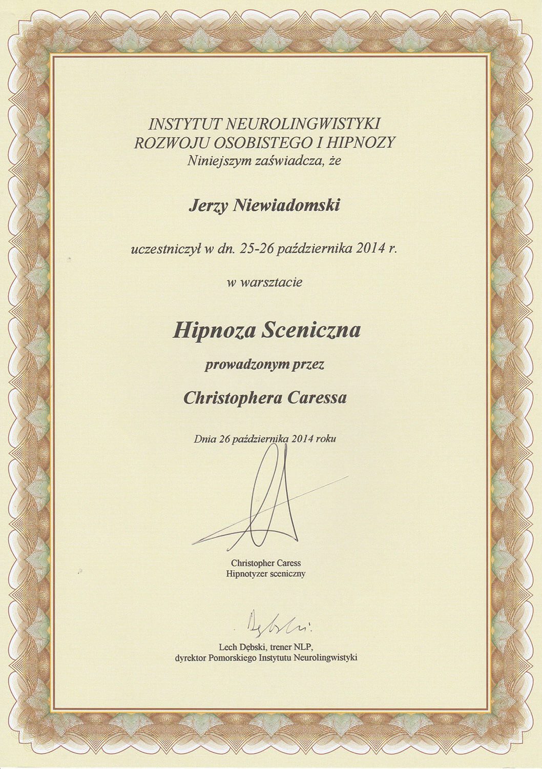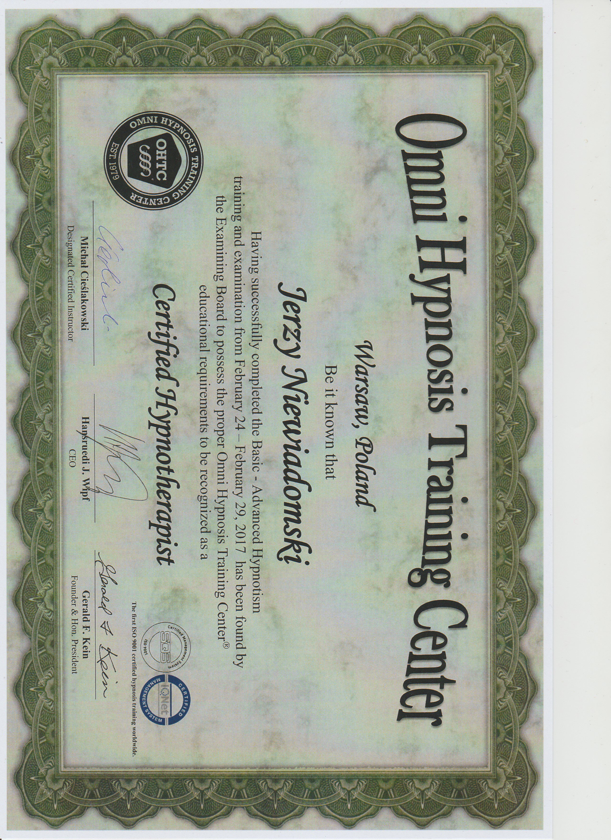 Należę do Największej amerykańskiej Organizacji Hipnoterapeutów OMNI, wyróżniony srebrną odznaką OMNI.