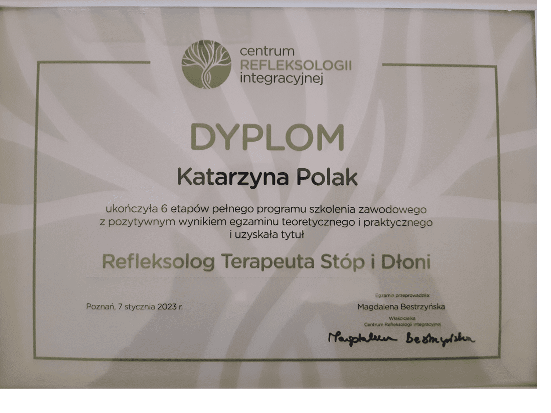 Ukończyłam studia podyplomowe z psychotraumatologii oraz liczne kursy potwierdzające kwalifikacje i umiejętności. W tej chwili jestem w trakcie studiów podyplomowych z psychosomatyki oraz kursu z totalnej biologii.