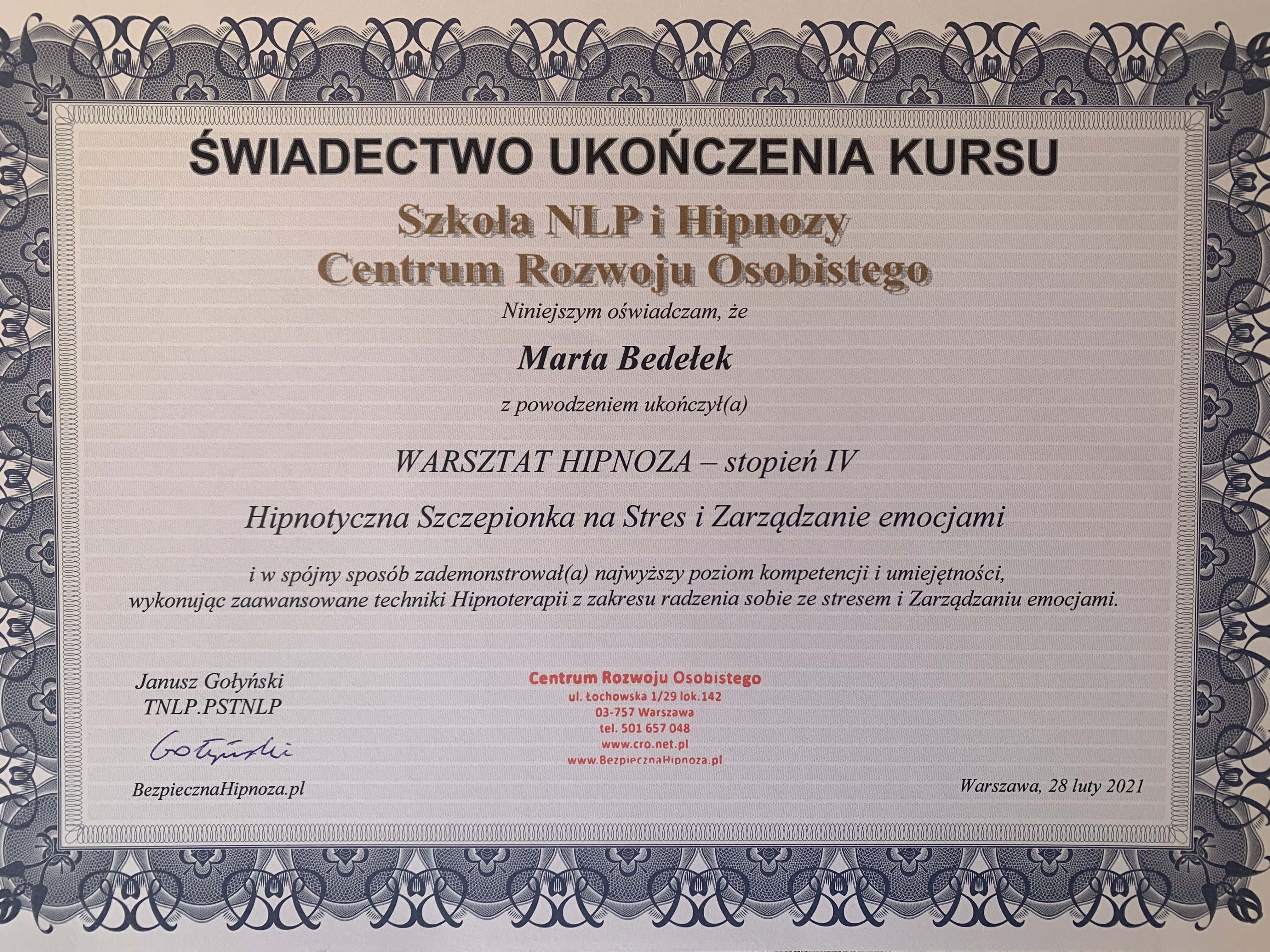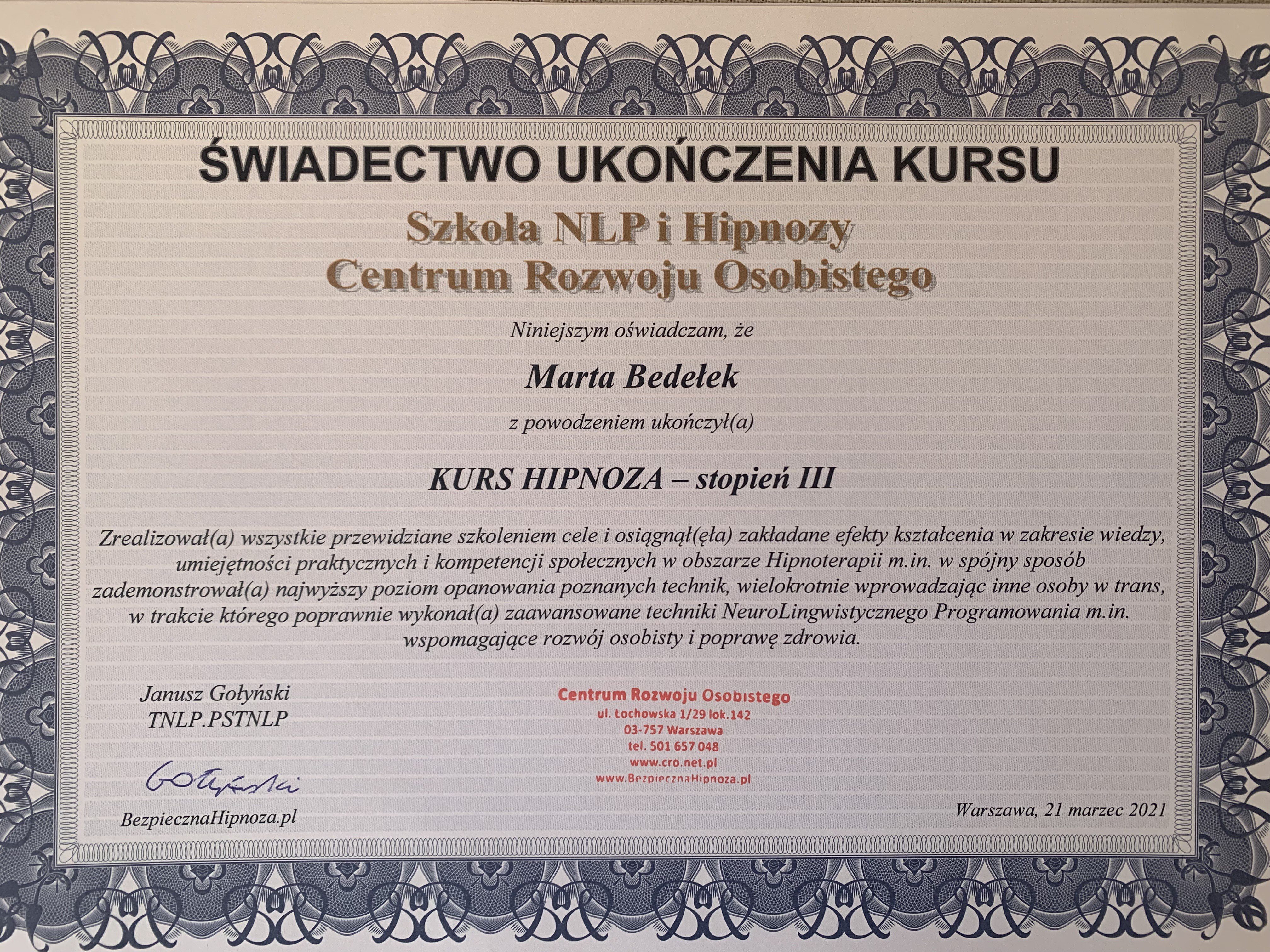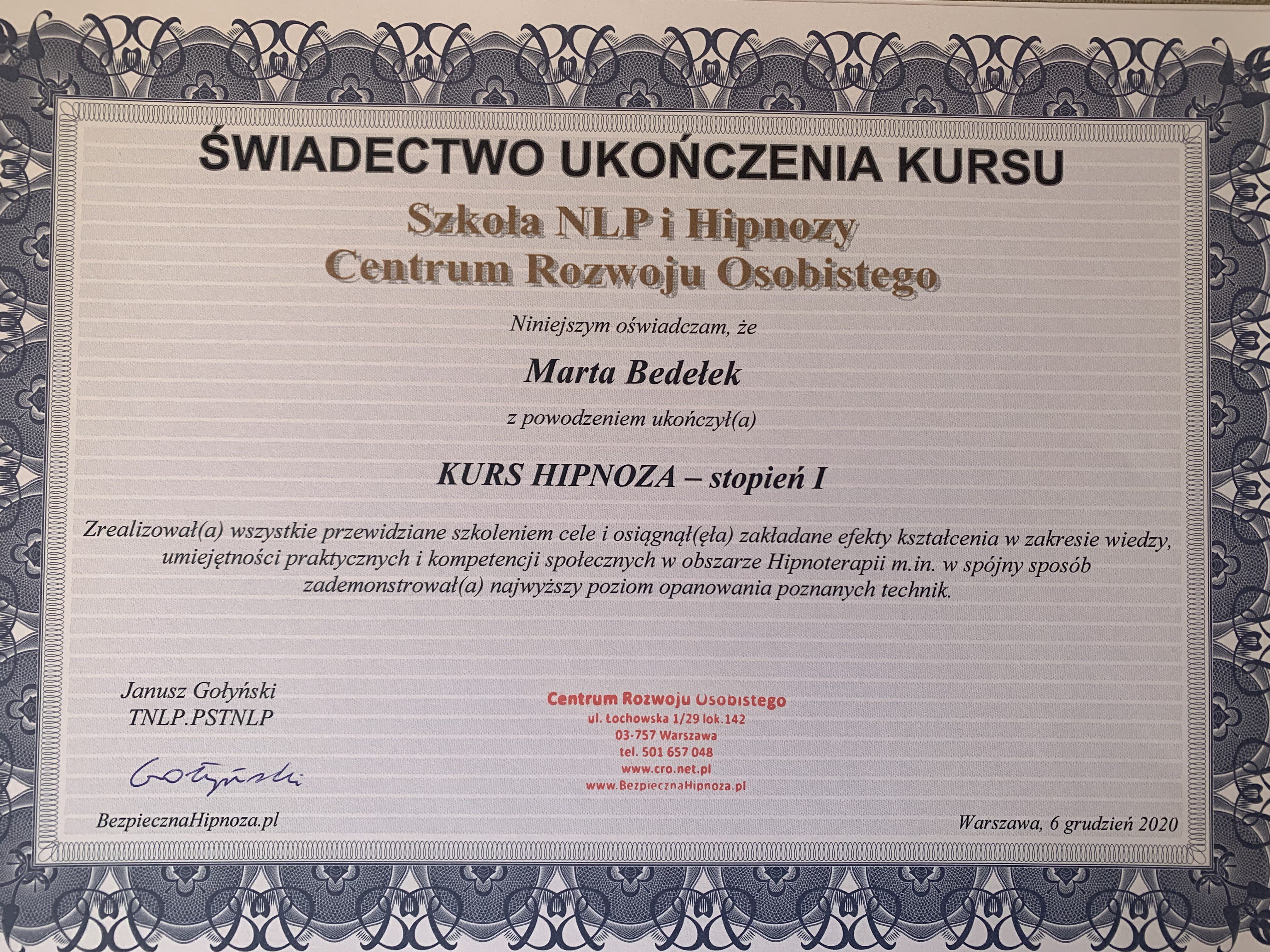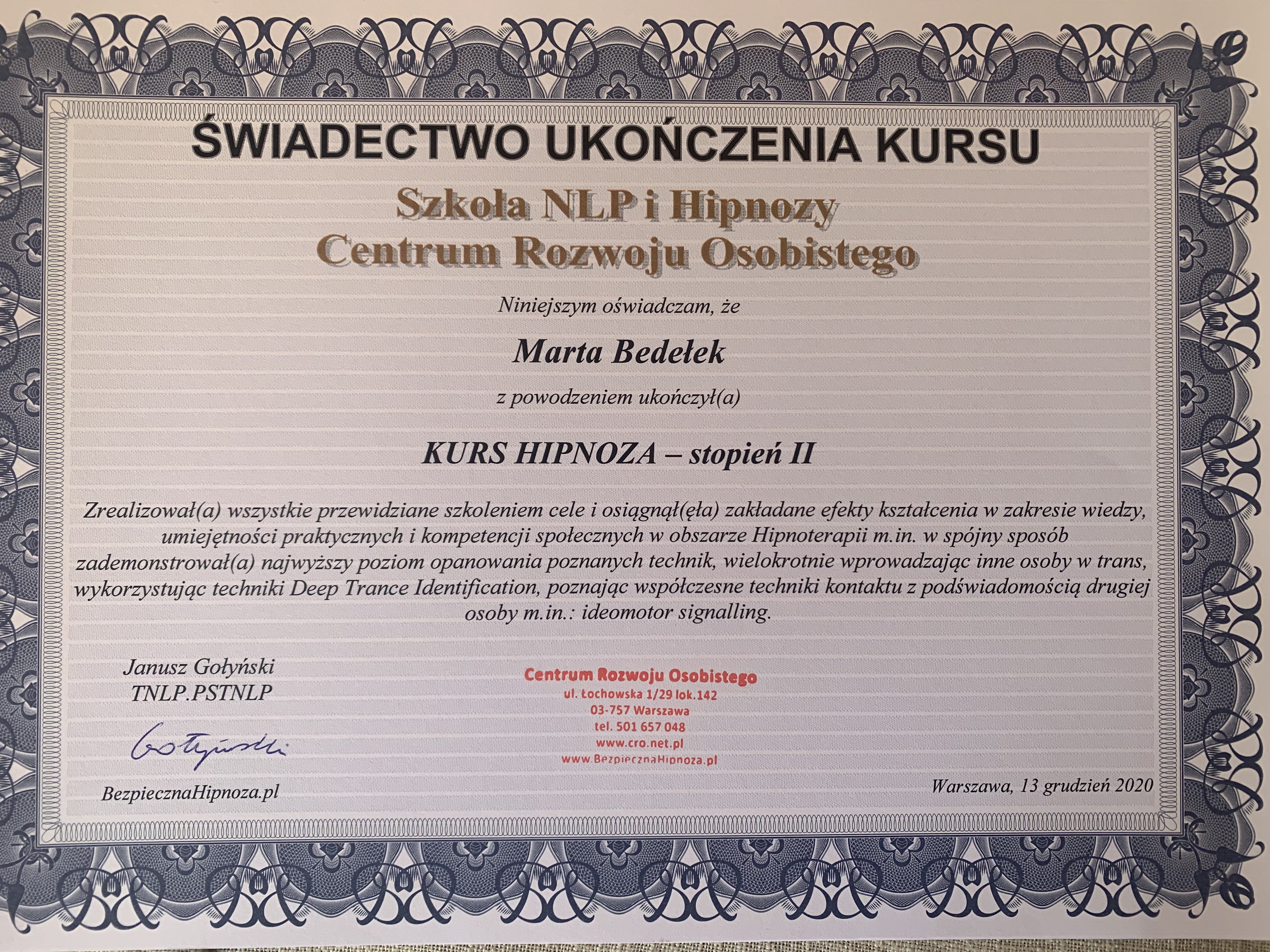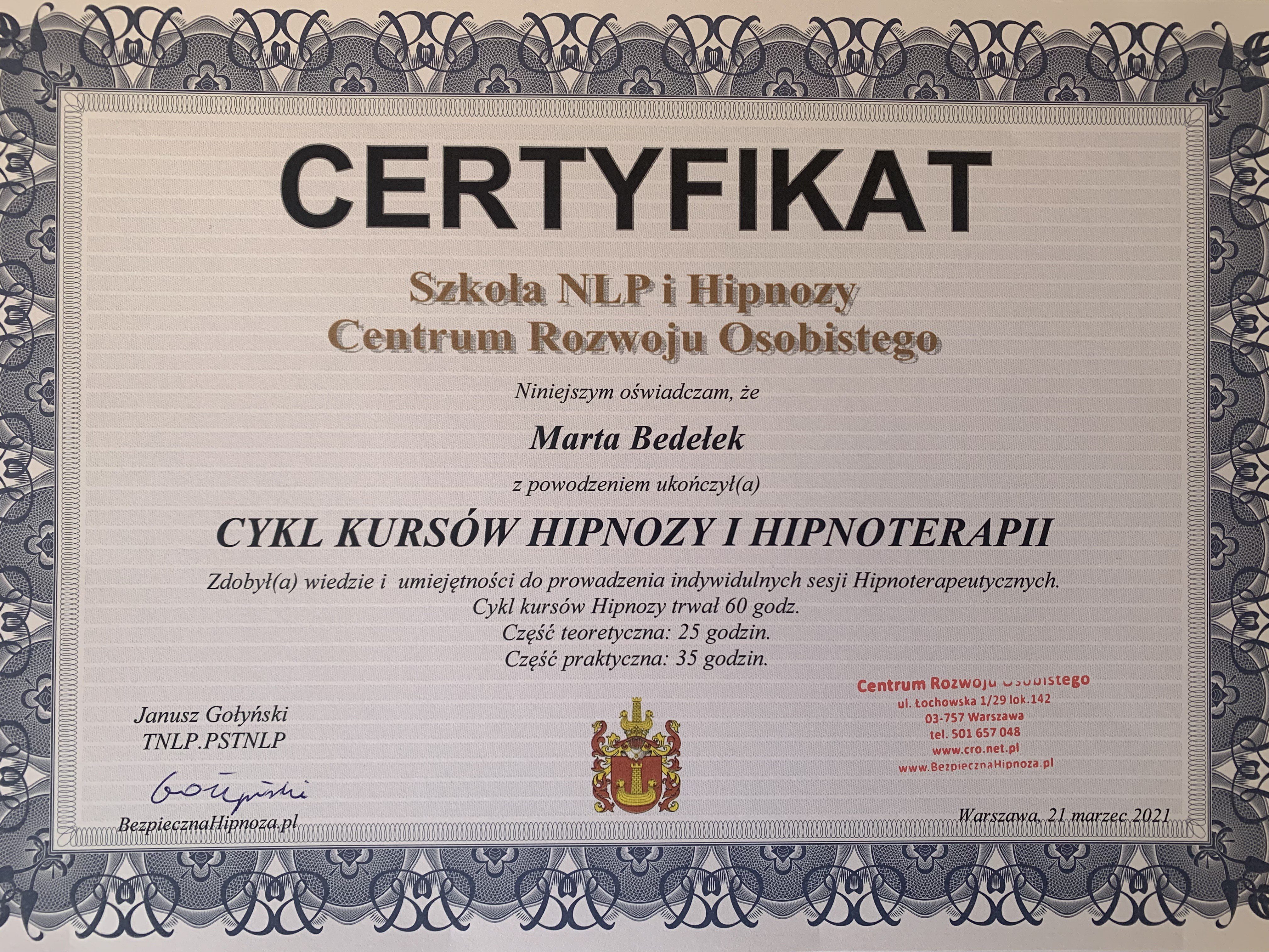 Posiadam wiele lat doświadczenia w prowadzeniu sesji hipnoterapii.