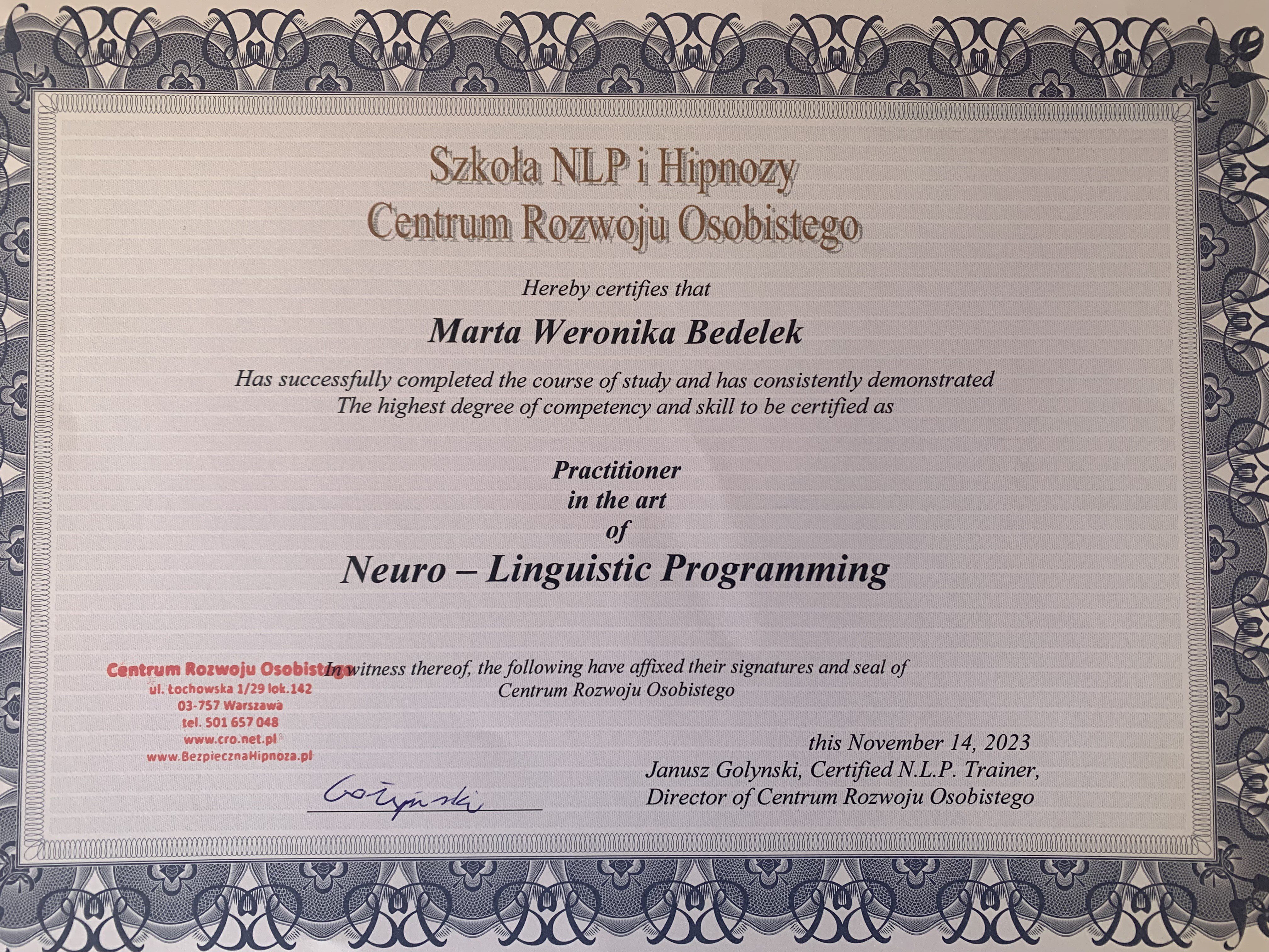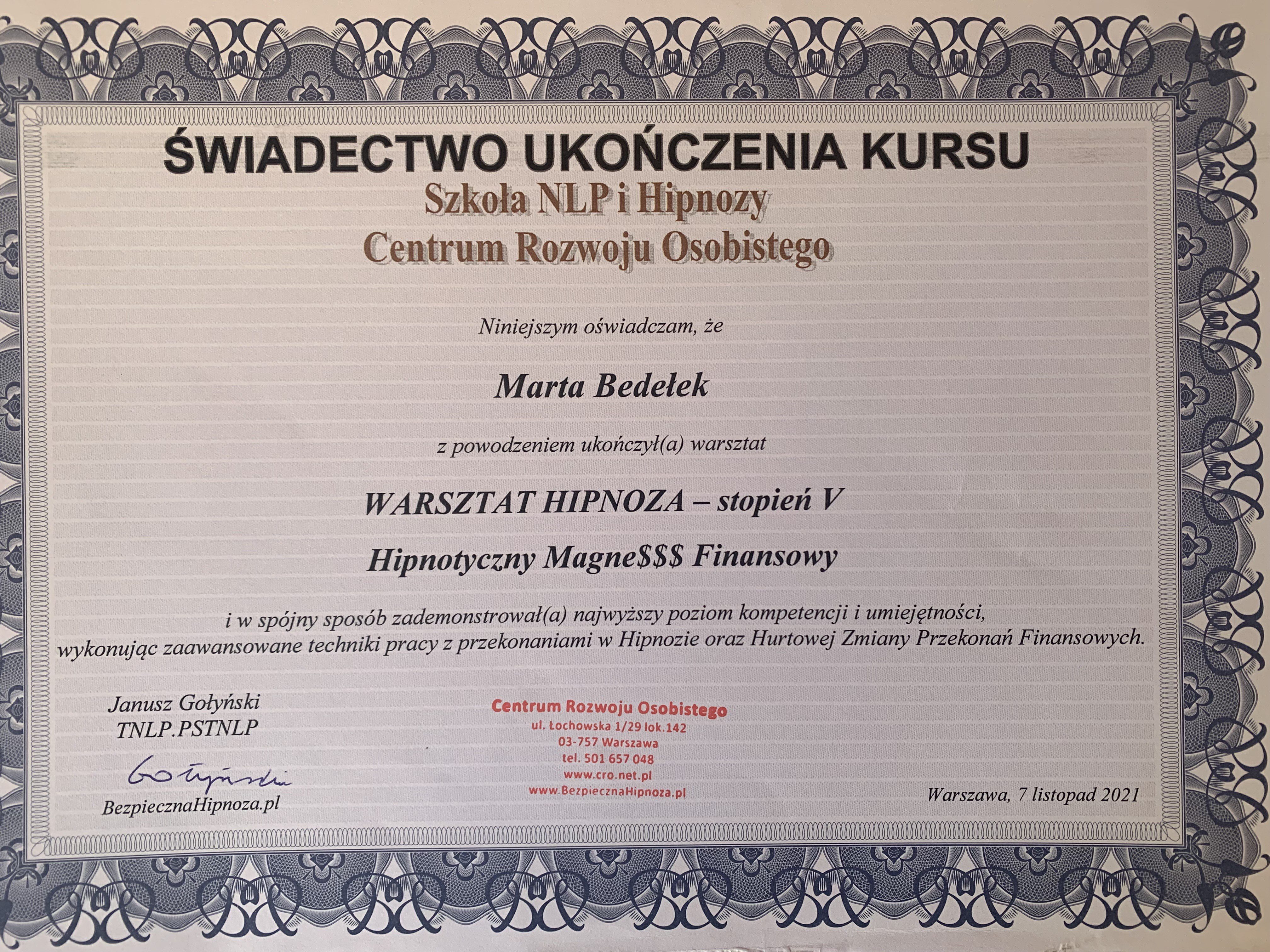 Zamiłowanie do filozofii, pedagogiki i psychologii oraz bogata wyobraźnia sprawia, że mogę pochwalić się licznymi sukcesami w dziedzinie przywrócenia Iskry Życia do moich klientów, którzy potrzebują konkretnej zmiany w podświadomości aby móc żyć w wolny, lekki i piękny sposób.