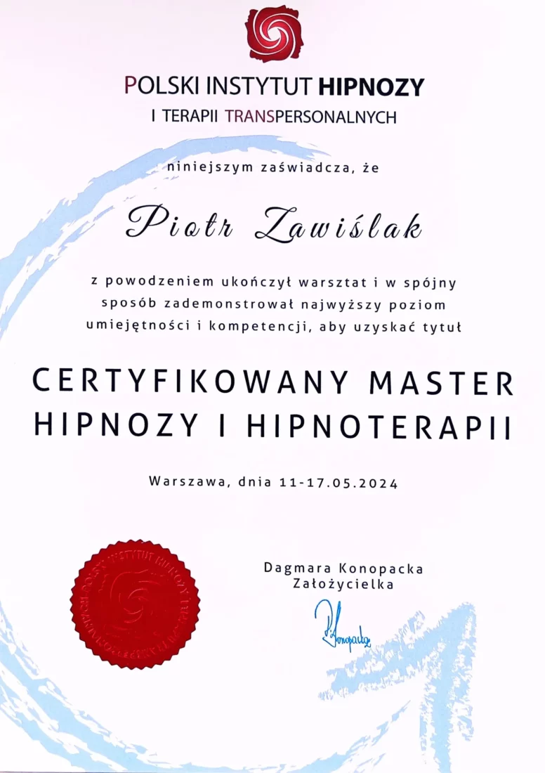 Jestem certyfikowanym hipnoterapeutą transpersonalnym. W swojej pracy bazuję na głębokim przeświadczeniu, że najwłaściwszą i najszybszą drogą do uzdrowienia jest kontakt z naszą najmądrzejszą częścią, czyli Wyższym Ja. Każda osoba to osobna historia i inna suma doświadczeń, dlatego kładę szczególny nacisk na empatię, życzliwość i wiarę w drugiego człowieka.