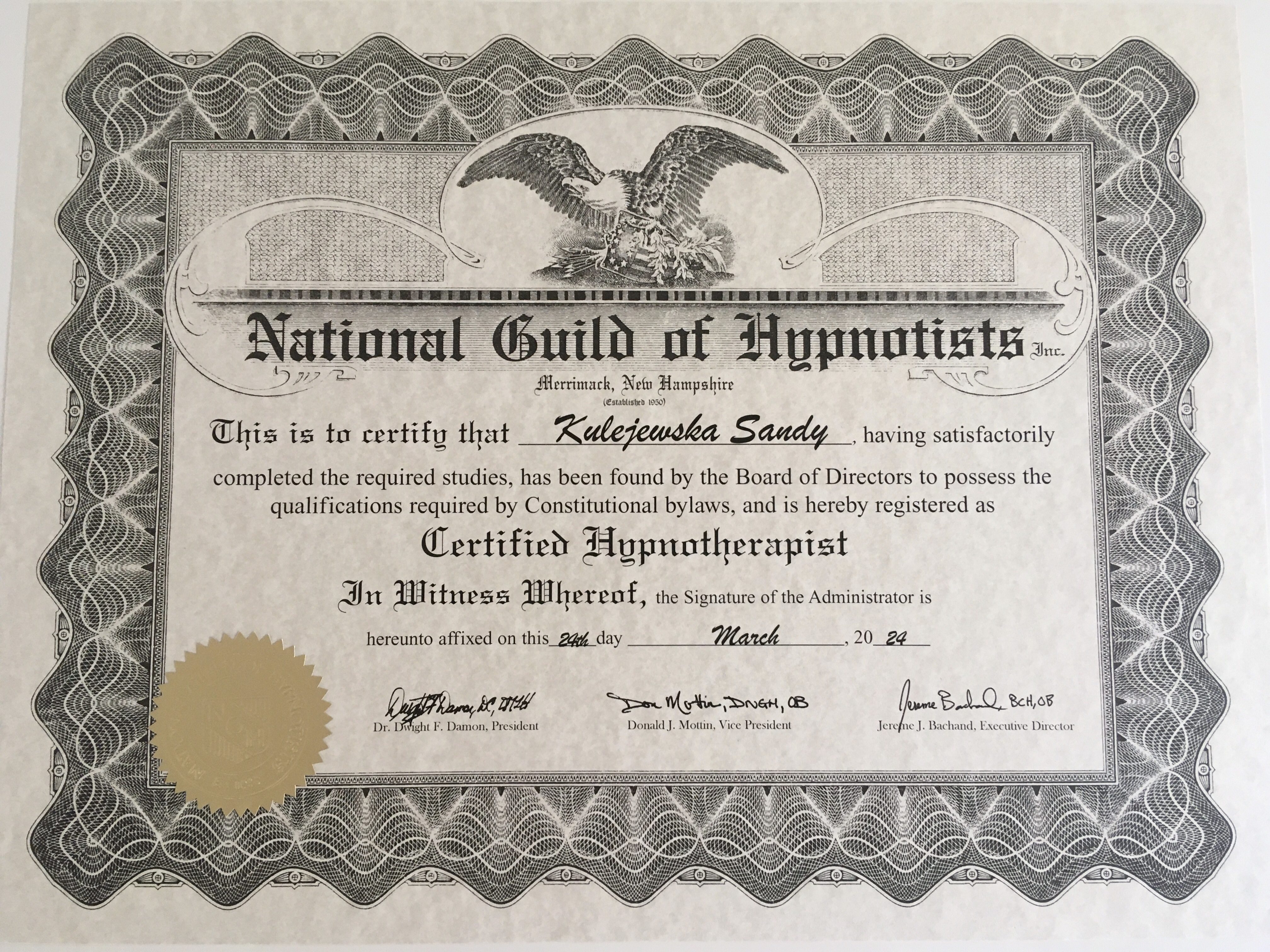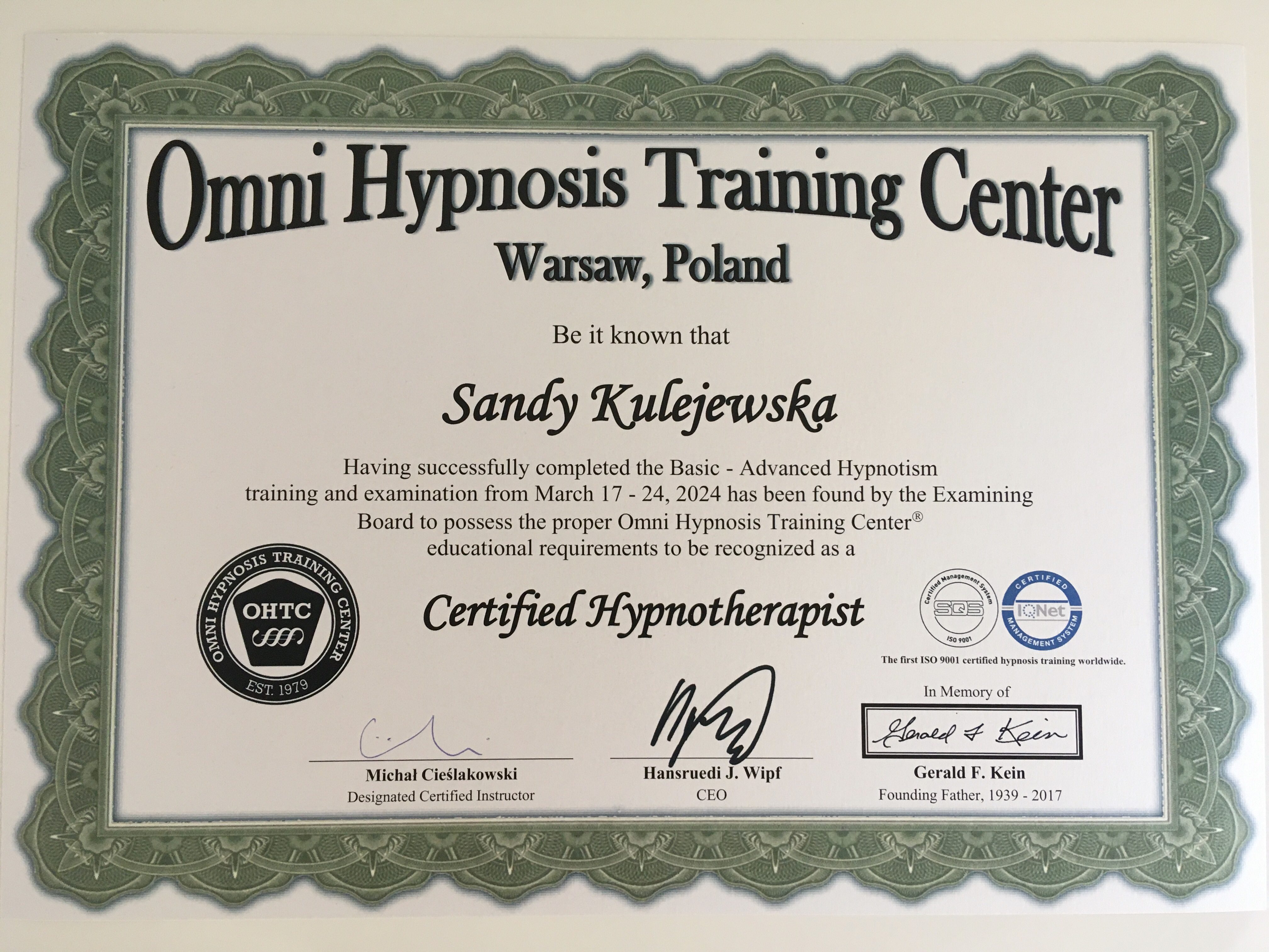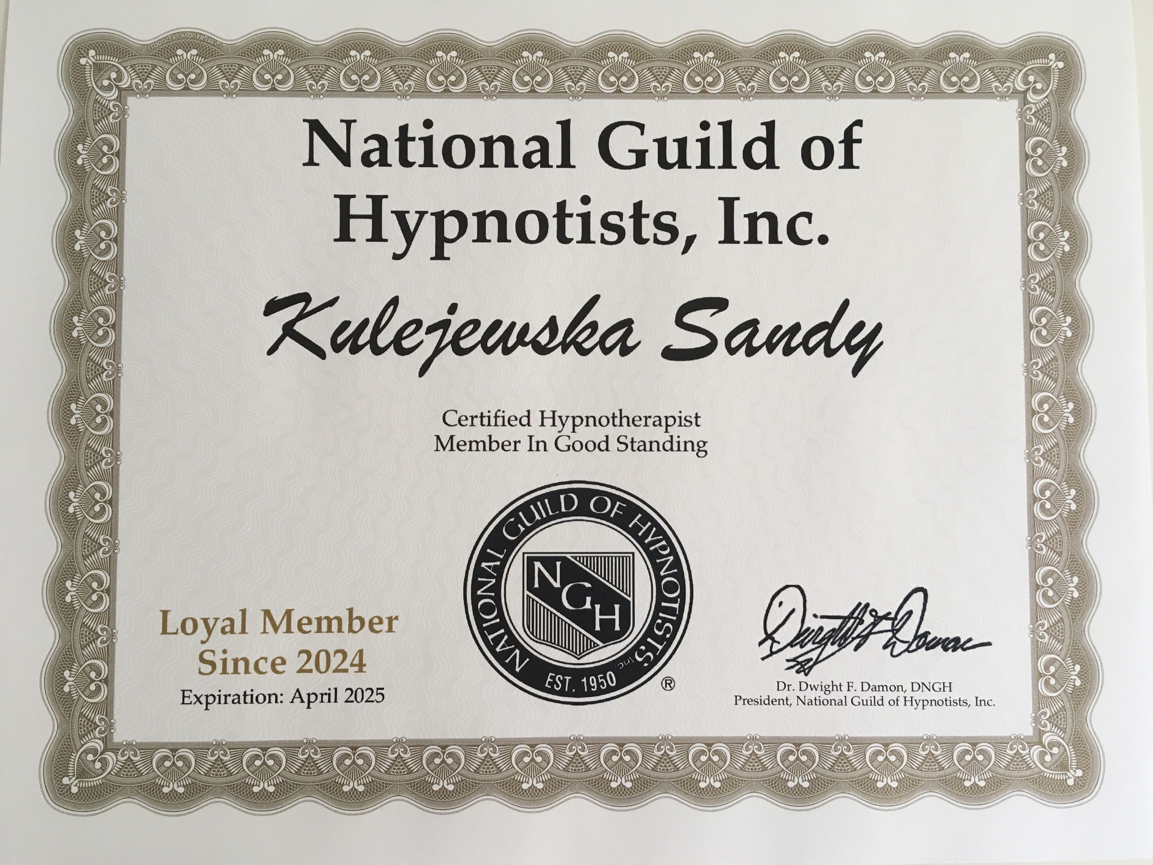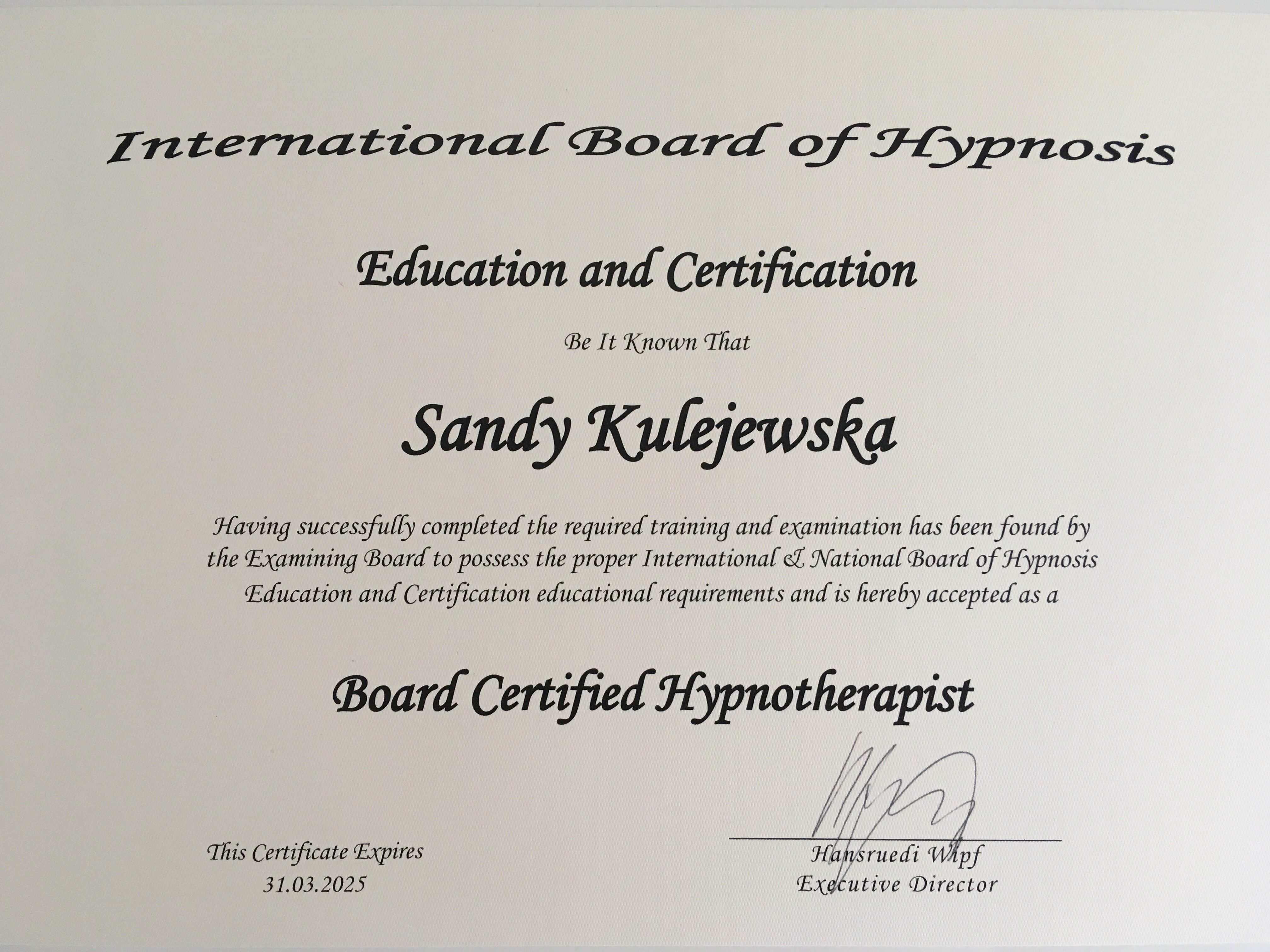 Nazywam się Sandy Kulejewska i jestem certyfikowaną hipnoterapeutką. Należę do organizacji takich jak Omni Hypnosis Training Center, National Guild of Hypnotists, International Board of Hypnosis Education and Certification oraz Barw Umysłu.
