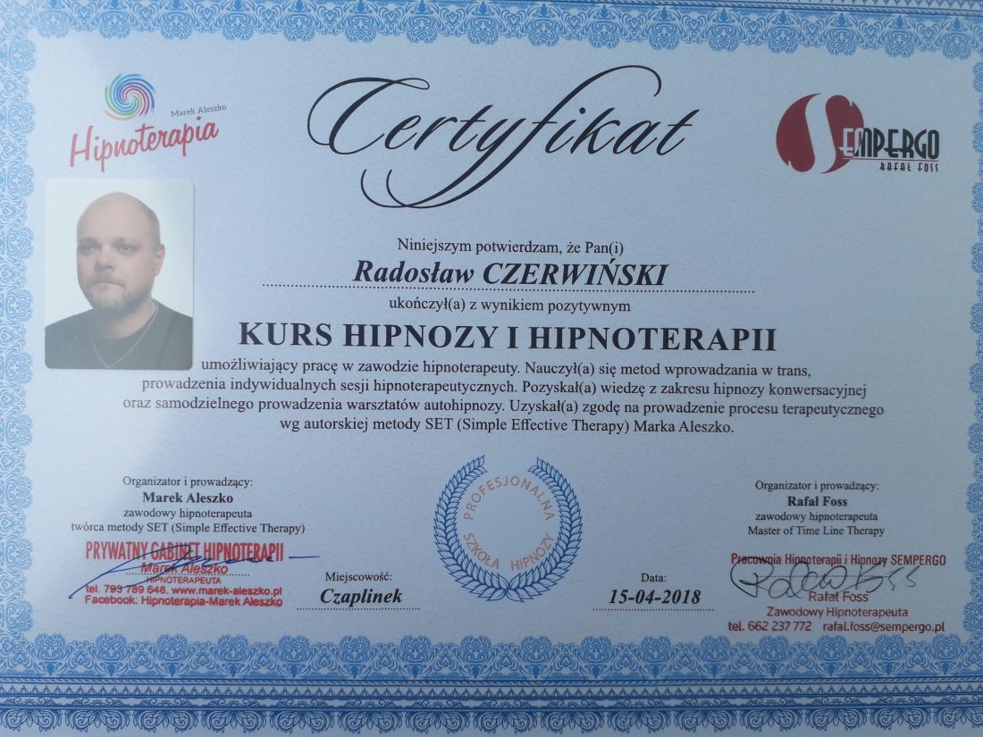 Skorzystałem kiedyś z pomocy hipnoterapeuty. Pozbyłem się problemu. Kiedy okazało się, że również mogę zostać hipnoterapeutą to skorzystałem wychodząc z założenia: jeśli hipnoterapia pomogła mi to ja chcę pomagać innym.