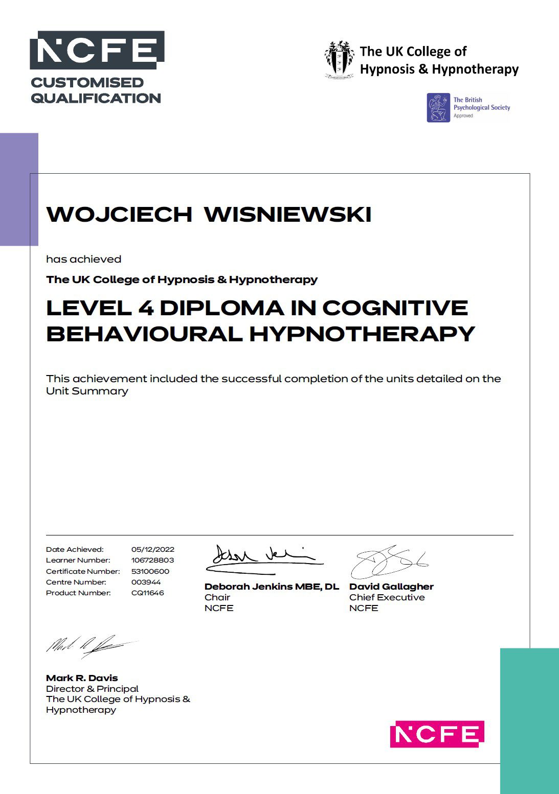 Łącząc dwie najpotężniejsze terapie psychologiczne: terapię poznawczo-behawioralną oraz hipnoterapię, pomagam innym osiągać cele, doświadczyć szybkich i trwałych zmian oraz podnieść jakość życia.